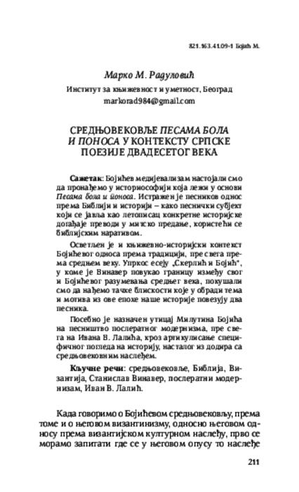 Средњовековље Песама бола и поноса у контексту српске поезије двадесетог века