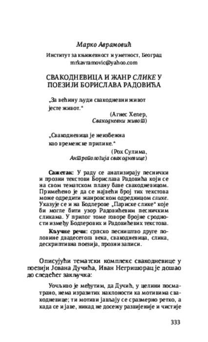 Свакодневица и жанр слике у поезији Борислава Радовића