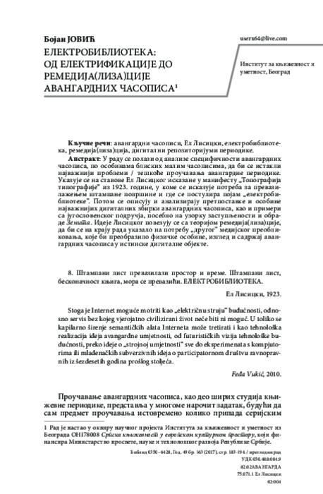 Електробиблиотека: од електрификације до ремедија(лиза)ције авангардних часописа Електробиблиотека
