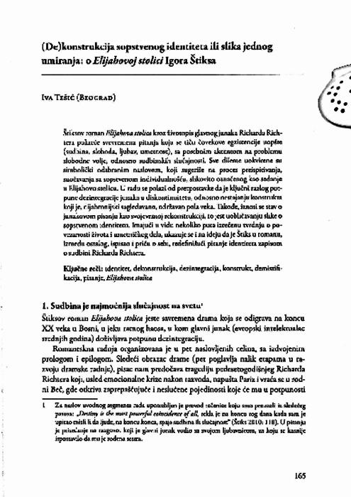 Tešić, Iva. “(De)Konstrukcija Sopstvenog Identiteta Ili Slika Jednog Umiranja: O Elijahovoj Stolid Igora Stiksa”. Edited by Virna Karlić, Sanja Šakić, and Dušan Marinković. Tranzicija I Kulturno Pamćenje : Zbornik Radova S Istoimenog Međunarodnog Znanstvenog Simpozija Održanog 26. I 27. Studenog 2015. Godine Na Filozofskom Fakultetu Sveučilišta U Zagrebu, 2017, 165-174.