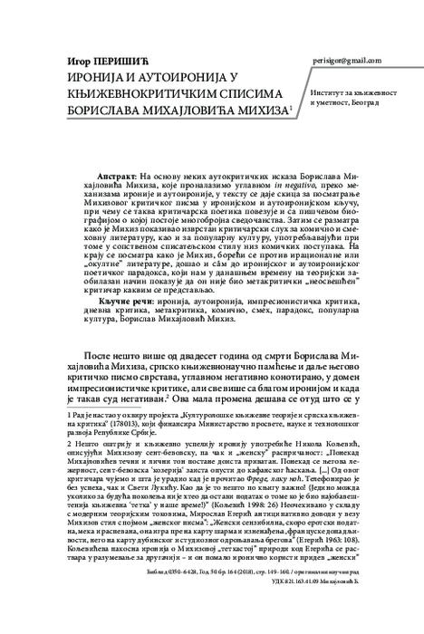 Иронија и ауто иронија у књижевнокритичким списима Борислава Мхајловића Михиза