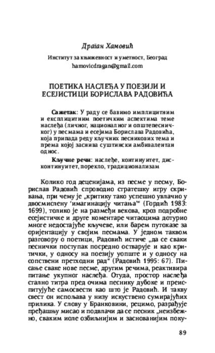 Поетика наслеђа у поезији и есејистици Борислава Радовића