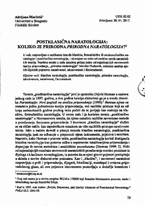 Marčetić, Adrijana. „Postklasična Naratologija: Koliko Je Prirodna Prirodna Naratologija?“. Уредио Snežana Milosavljević-Milić, Jelena Jovanović, и Mirjana Bojanić-Ćirković. Od Narativa Do Narativnosti : Pola Veka Naratologije : Tematski Zbornik Radova, 2018., 73-85.