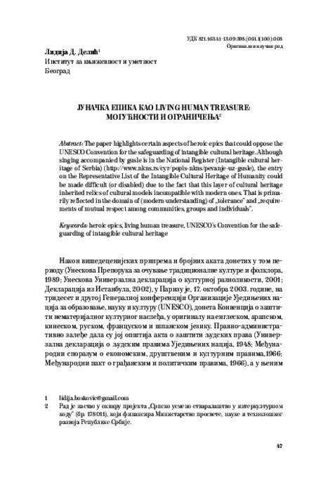 Јуначка епика као Living Human Treasure: могућност и ограничења Јуначка епика као Living Human Treasure