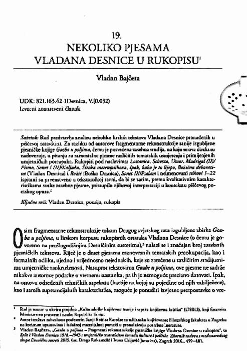 Nekoliko pjesama Vladana Desnice u rukopisu
