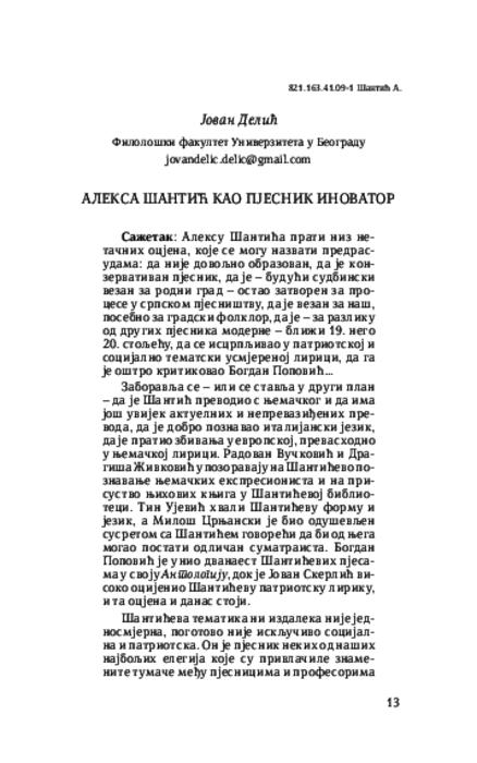 Песничке теме и поетички модели Алексе Шантића : зборник радова