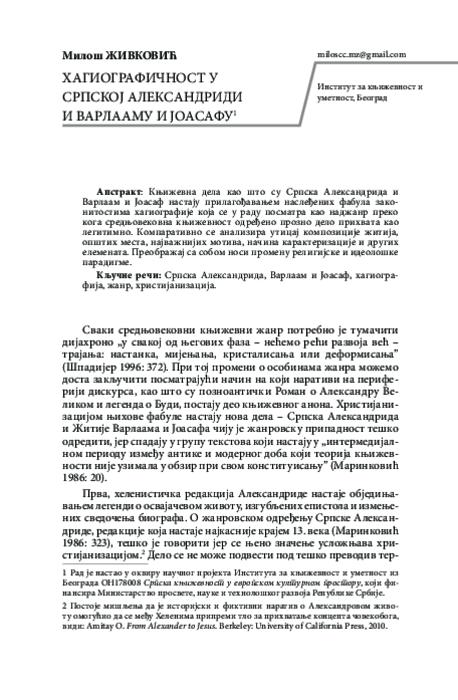 Хагиографичност у Српској Александриди и Варлааму и Јоасафу