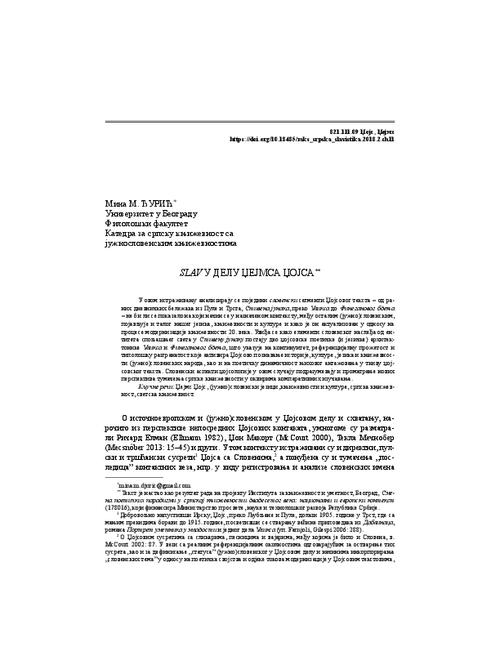 Ђурић, Мина М. „Slav У Делу Џејмс Џојса“. Српска Славистика : Колективна Монографија : [Радови
